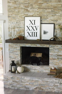Trending 1950S Flagstone Fireplace We plan to paint the stained beams white, add tongue and groove board between (white) and recessed lighting. 1950S Flagstone Fireplace : Customize the fire display with adjustable brightness settings.