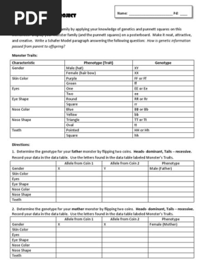 Trending Monster Punnett Square Worksheet Answer Key Print this page and answer the questions. Monster Punnett Square Worksheet Answer Key : Also, using punnett square(s), show how two hearing dogs could produce deaf offspring.